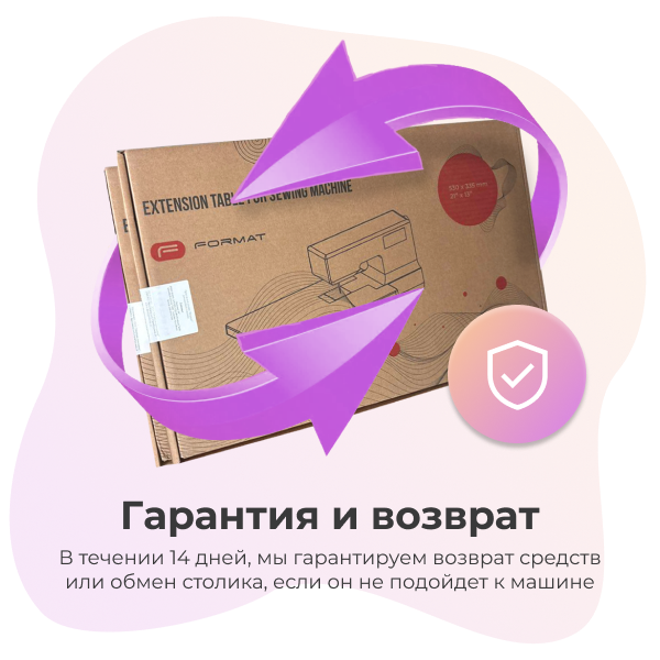 Перед отправкой столика мы всегда консультируем покупателя и уточняем все детали заказа, но если столик приехал и не подошел к Вашей швейной машине, мы гарантируем возврат средств или обмен столика с доставкой за наш счет в течении 14 дней.